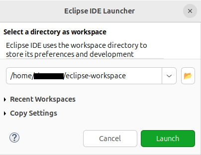При первом запуске среды Eclipse необходимо выбрать директорию, в которой будет создан workspace, рисунок 1, после чего нажать кнопку "Launch".