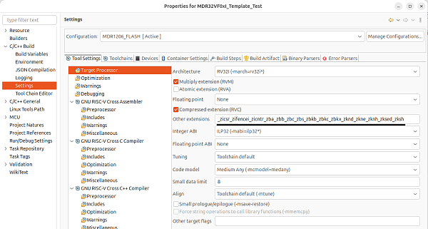 [i] Создаем проект для МК MDR1206FI, MDR1206AFI в IDE Eclipse в OC Linux