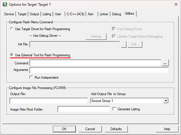 Рисунок 15 - Options for Target. Вкладка 'Utilities'