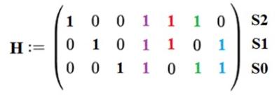 Проверочная матрица H для кода Хэмминга 7,4 имеет вид, показанный на рисунке 4.