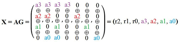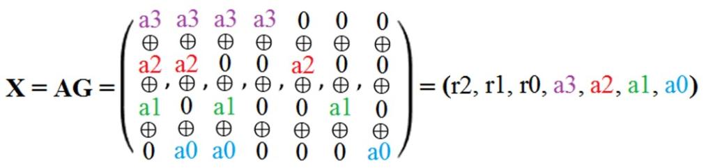 p = r2 ⊕ r1 ⊕ r0 ⊕ a3 ⊕ a2 ⊕ a1 ⊕ a0; (7)