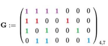 При перемножении матриц для кодирования Хэмминга вместо «+» используется ⊕ (сложение по модулю 2).