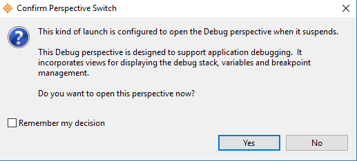 Рисунок 16 - Окно с соглашением об открытии перспективы Debug режима