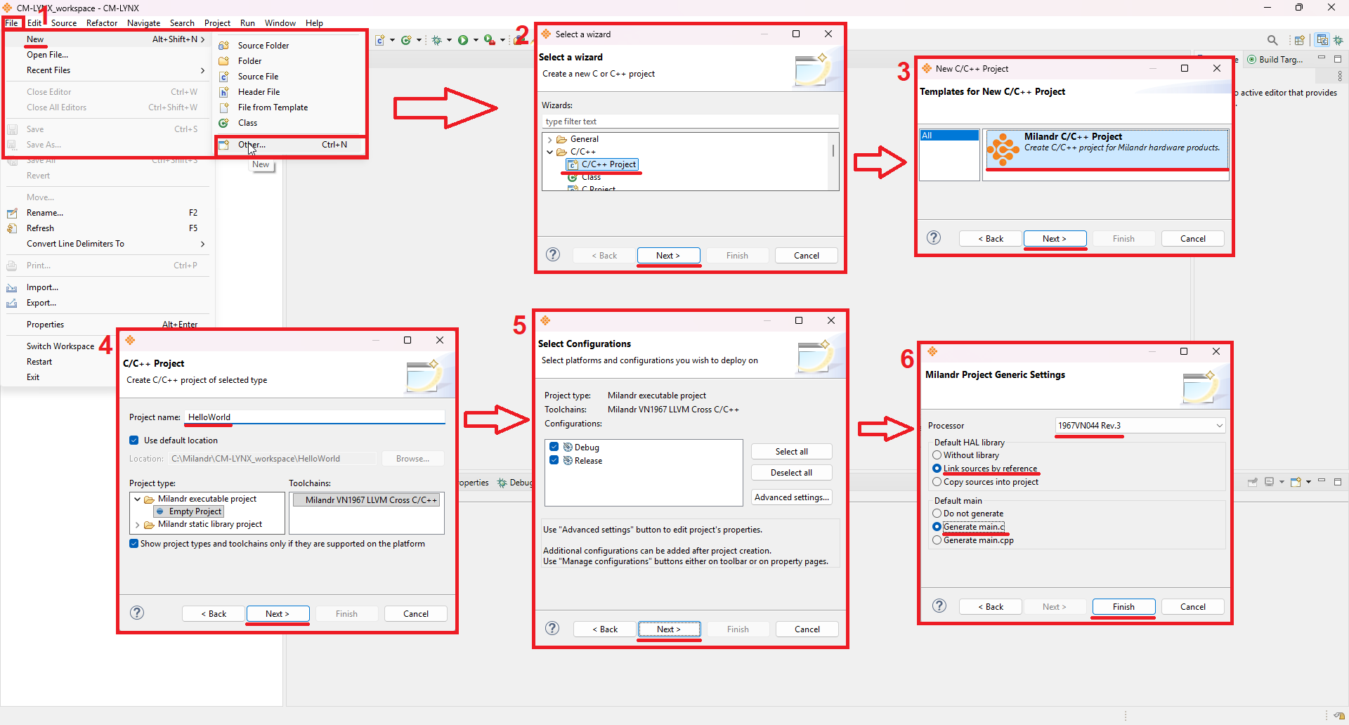 Эта статья посвящена тому, как начать работать с процессорами ЦОС Миландр в среде CM-LYNX. В статье показано создание проекта, его настройка, а также запуск программы "HelloWorld", мигающей светодиодами.