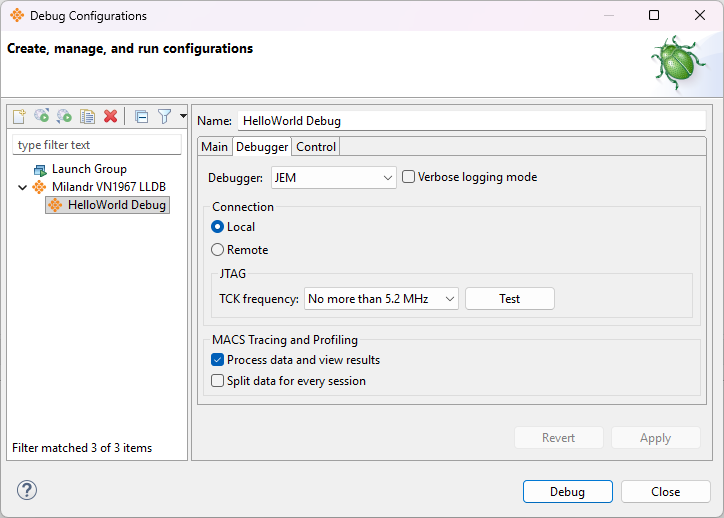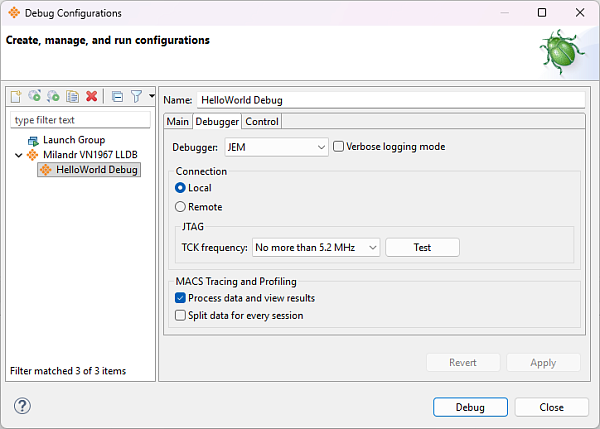 Подробное описание всех режимов отладочной конфигурации приводится в документе "ML_ЦППО_GUI_Руководство_пользователя_R_Vx.x.x", пункт "Настройка конфигурации и запуск отладки" (x.x.x - номер версии документа).