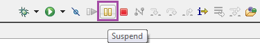 Приостановить выполнение программы можно с помощью кнопки "Suspend". Она показана на рисунке 18, выделена фиолетовым цветом.