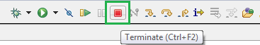Завершение процесса отладки осуществляется нажатием на кнопку "Stop". Кнопка показана на рисунке 19 и выделена зеленым цветом.