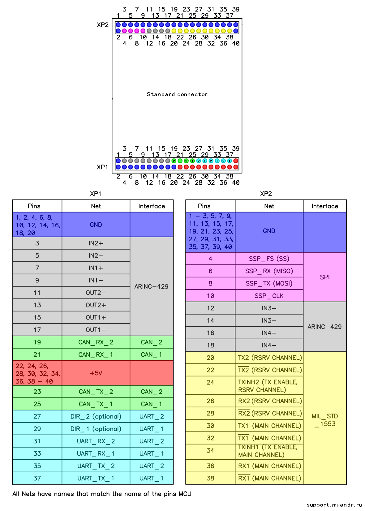 В остальном же ограничений по подключению нескольких модулей в один разъем нет. Также без проблем можно работать независимо на двух разъемах с двумя модулями МКИО или ARINC429, поскольку они, согласно таблице из рисунка 2, задействуют разные контроллеры и приёмопередатчики соответственно.
