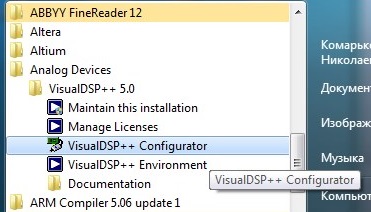 В меню «ПУСК» запускаем программу VisualDSP++ Configurator (рисунок 3).
