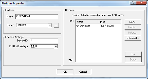 Рисунок 6 - VisualDSP++ Configurator -> Platform Properties -> Device Properties
