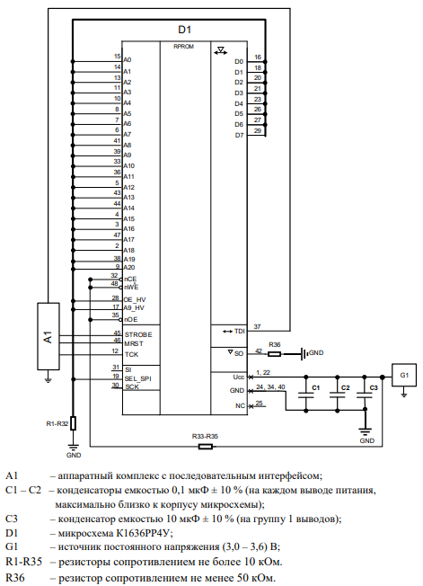 Рисунок 1 - Типовая схема включения микросхемы при эксплуатации в режиме работы по последовательному интерфейсу