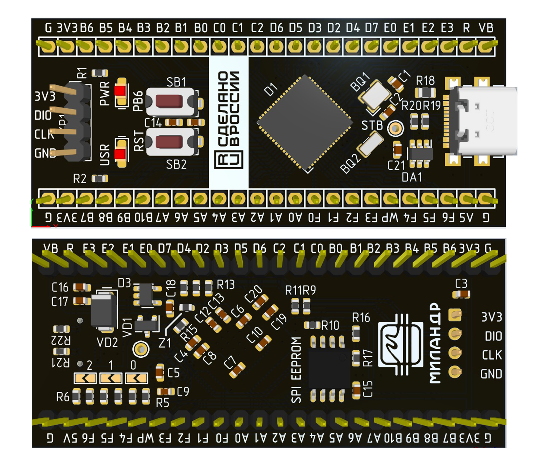 Комплектация при поставке: Отладочная плата, штыревые планки (PLS-24 - 2 шт., PLS-4R - 1 шт.), - в антистатическом пакете.