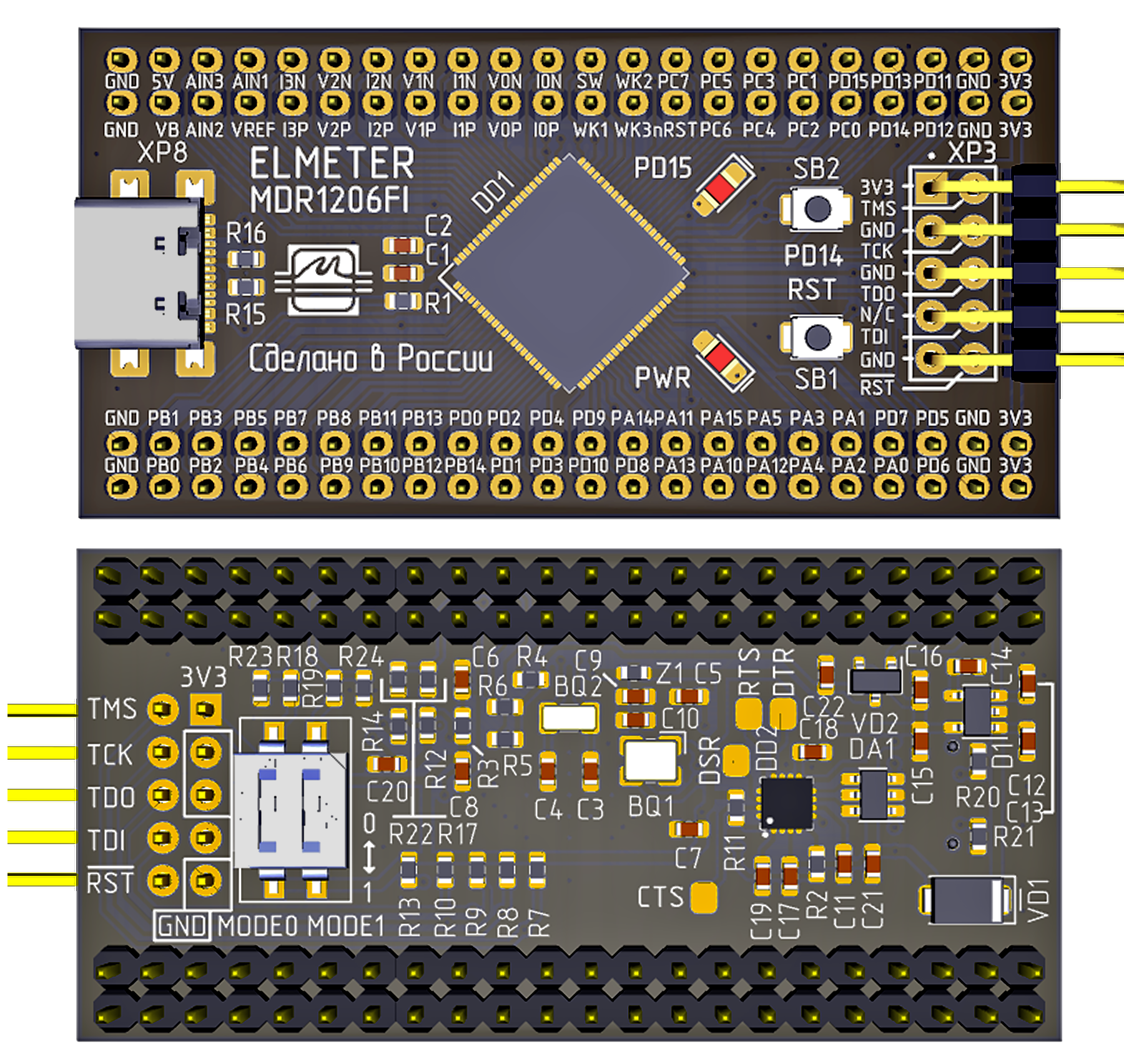 - XP3: JTAG-разъем (для отладки, не запаян);